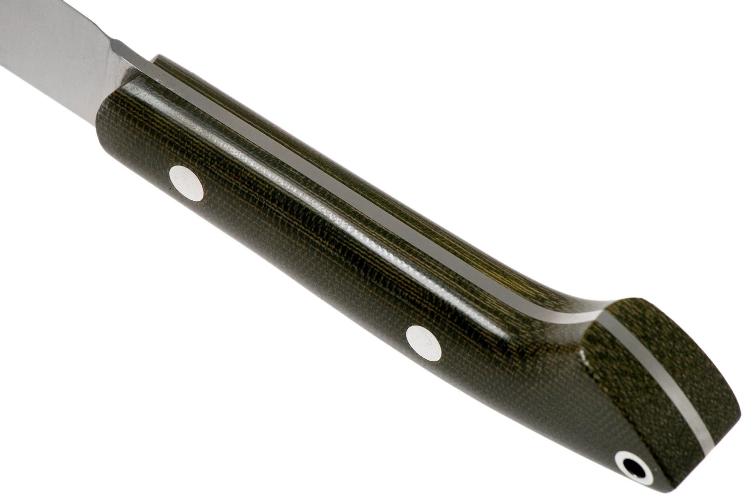 Le Bark River Bird & Trout est un couteau de chasse léger, conçu pour les volailles et le poisson. Comme son nom l’indique : Bird & trout soit oiseau & truite. Beaucoup de couteliers ont déjà fabriqué une variante de ce concept classique. Mais peu de couteaux arrivent à la cheville de ce Bark River. La lame est vraiment très fine derrière l’arête. En résulte une coupe comme aucune autre. L’émouture convexe permet une super conservation du tranchant. Un grand atout pour la chasse et/ou la pêche. Même en cuisine, il a fait ses preuves ! Pour le bushcraft et le travail du bois, c’est aussi un modèle bien bâti.