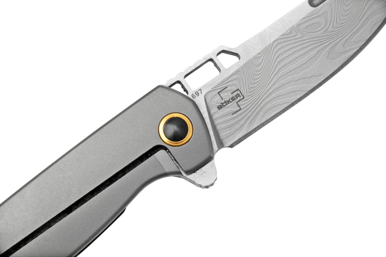 Le Böker Plus Messerschmitt ME 109 est un super couteau de poche, avec une lame damassée faite à partir de pièces d’un véritable Messerschmitt ME 109. L’avion dont les pièces d’acier ont été utilisées a été abattu en plein air, alors qu’il volait au dessus de l’Angleterre. Chad Nichols a forgé ensemble de l’acier du siège du pilote et une partie de l’hélice avec un autre acier, créant ainsi un acier damassé magnifique et riche en histoire. La fente vers la pointe de la lame est également un hommage au ME 109, faisant référence aux encoches dans la pointe de l’avion où s’accrochent les armes.