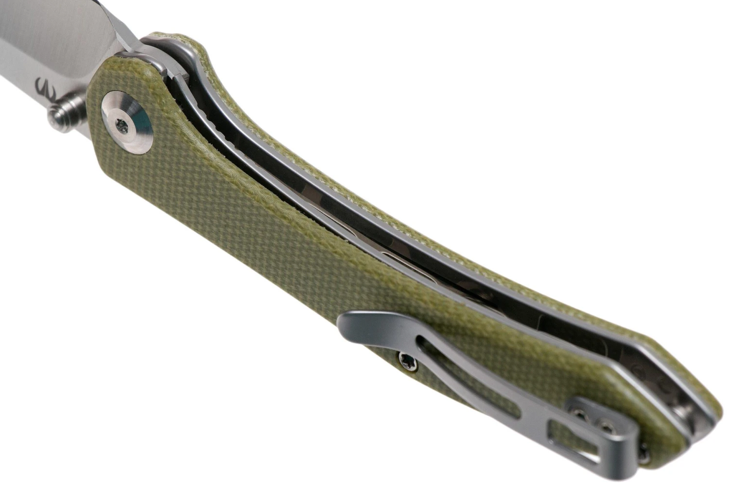 Le Civivi Hadros C20004 est un couteau de poche EDC fin et léger, conçu par Dylan Mallery. Ici, la lame est de forme « wharncliffe ». Une arête droite qui s’aiguise aisément sur une pierre à aiguiser plate. La pointe acérée est excellente pour les travaux de précision. La lame de l’Hadros s’ouvre à une main avec le repose-pouce. La lame est verrouillée par un linerlock solide.
