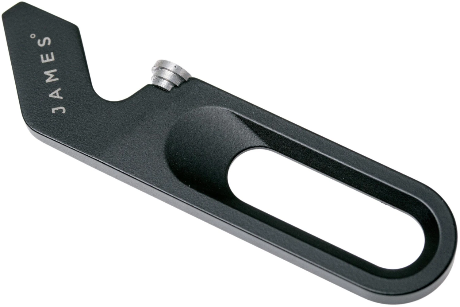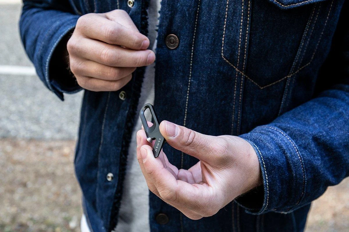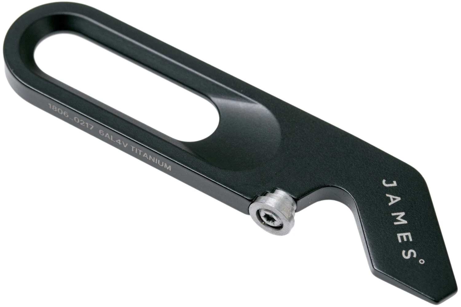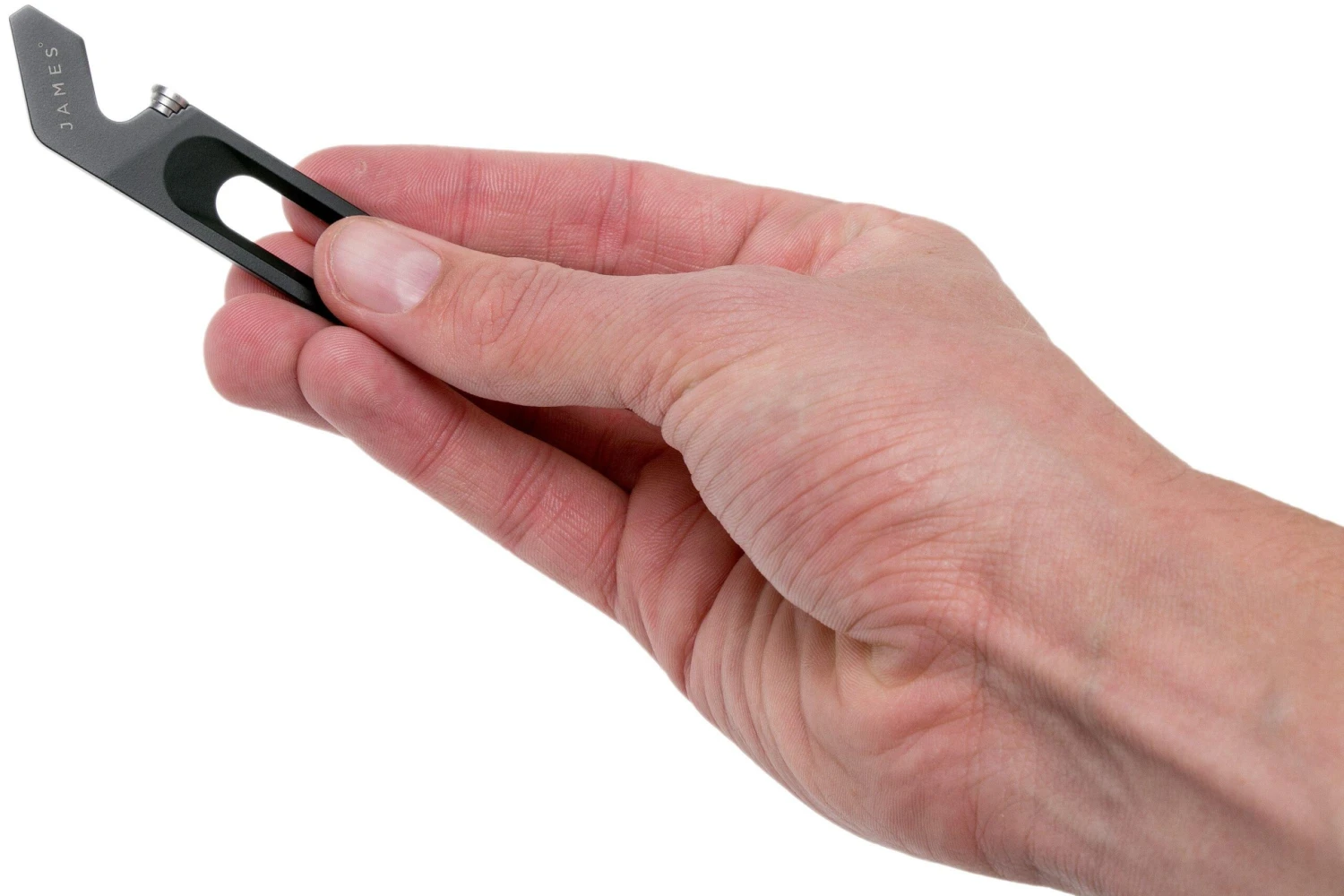 The James Brand Halifax est un porte-clés en titane avec quelques outils pratiques. L’extrémité du Halifax est à la fois un tournevis et un levier. L’embout est également très approprié comme grattoir pour gratter la saleté. Un décapsuleur très innovant avec un disque en acier interchangeable est intégré dans la poignée. Ce disque en acier est fixé à l’aide d’une vis dans la poignée et peut être remplacé si nécessaire. Comme ce disque est fait d’acier inoxydable durci, il s’usera moins rapidement que le titane. Très pratique pour ouvrir une bière bien fraiche en fin de journée ! La poignée est faite d’une seule pièce de titane, ce qui la rend très robuste. Un détail digne de mention est que le Halifax est livré dans un sac en plastique imperméable pour votre téléphone. Un petit extra bien pensé de la part des gens de The James Brand.
