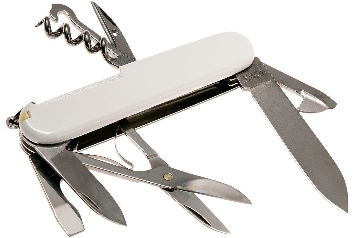 Comme son nom l’indique, le Victorinox Climber est un couteau suisse développé pour l’escalade et les expéditions de survie. Mais ce couteau a aussi des outils qui peuvent vous sauver lors d’une excursion en montagne par exemple. Le Climber est idéal lorsque vous voulez transporter un couteau pas trop grand et lourd mais avec suffisamment de fonctionnalités. Ce couteau n’a pas moins de 14 fonctions en acier inoxydable, tranchant et robuste ! En plus d’un petit et d’un grand couteau, ce couteau d’officier classique est équipé de ciseaux, d’un ouvre-boîtes, d’un tire-bouchon et d’une pince à épiler. Les outils sont protégés par un boîtier robuste. Que vous montiez une échelle ou un mur de montagne escarpé, le Victorinox Climber vous guidera vers le sommet.