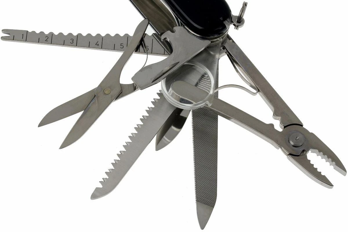 Avec ses 33 fonctions, le Swisschamp Victorinox donne une nouvelle dimension au mot polyvalent. Ce couteau est en fait plus une boîte à outils miniature. Pratique dans toutes les situations. Grâce à sa taille relativement compacte, vous avez toujours une place pour ce polyvalent. Et avec la garantie à vie, vous achetez un Swisschamp à vie. De l’aventurier au collectionneur : ce couteau suisse fait le bonheur de beaucoup de gens.